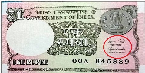 1 denomination currency notes with rupee symbol (₹) and the inset letter .